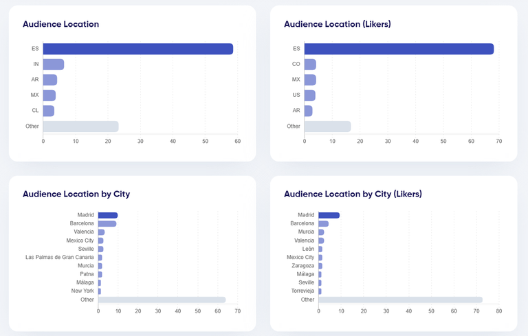Detailed graphs are displayed at the bottom of the report, allowing for a deeper analysis of the audience: its GEO, gender, and type.